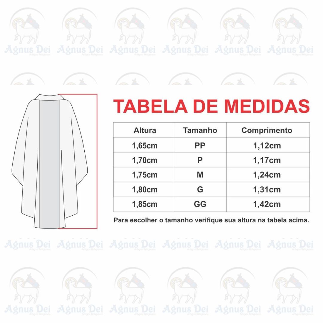 Casula produzida em tecido litúrgico e bordada com linha de alta qualidade.
