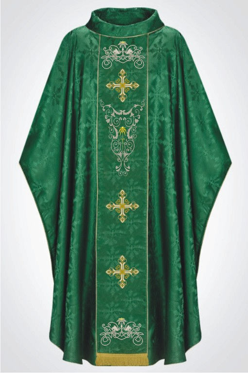 Casula produzida em tecido litúrgico e bordada com linha de alta qualidade.