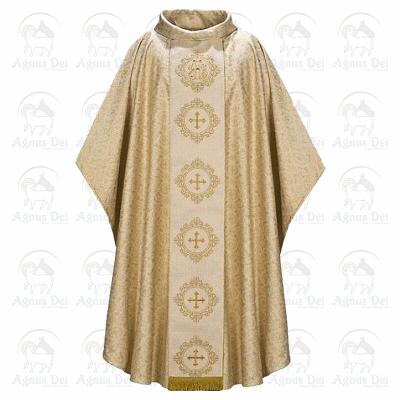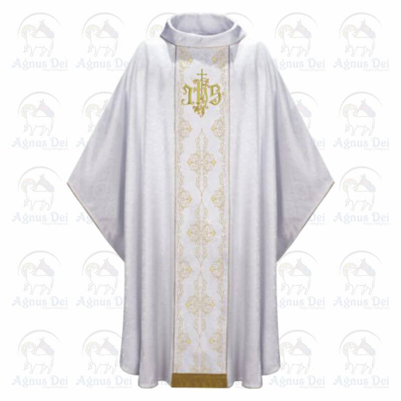 Casula produzida em tecido litúrgico e bordada com linha de alta qualidade.