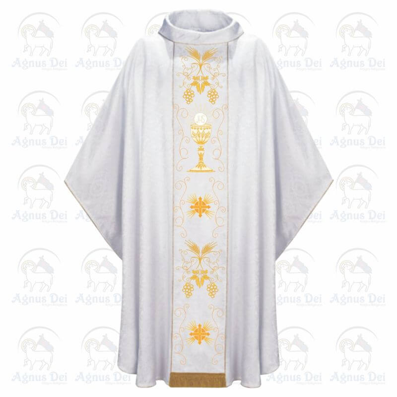 Casula produzida em tecido litúrgico e bordada com linha de alta qualidade.