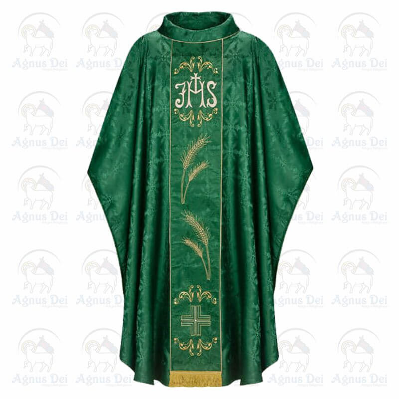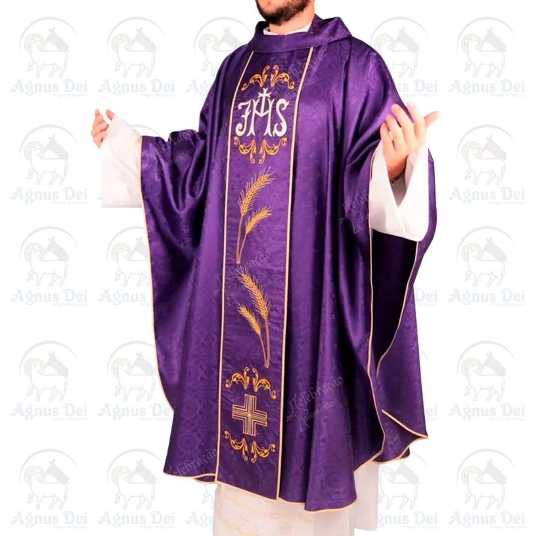 Casula produzida em tecido litúrgico e bordada com linha de alta qualidade.