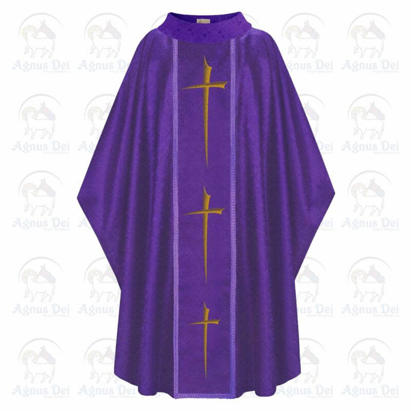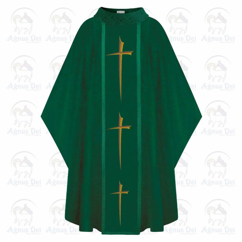 Casula produzida em tecido litúrgico e bordada com linha de alta qualidade.
