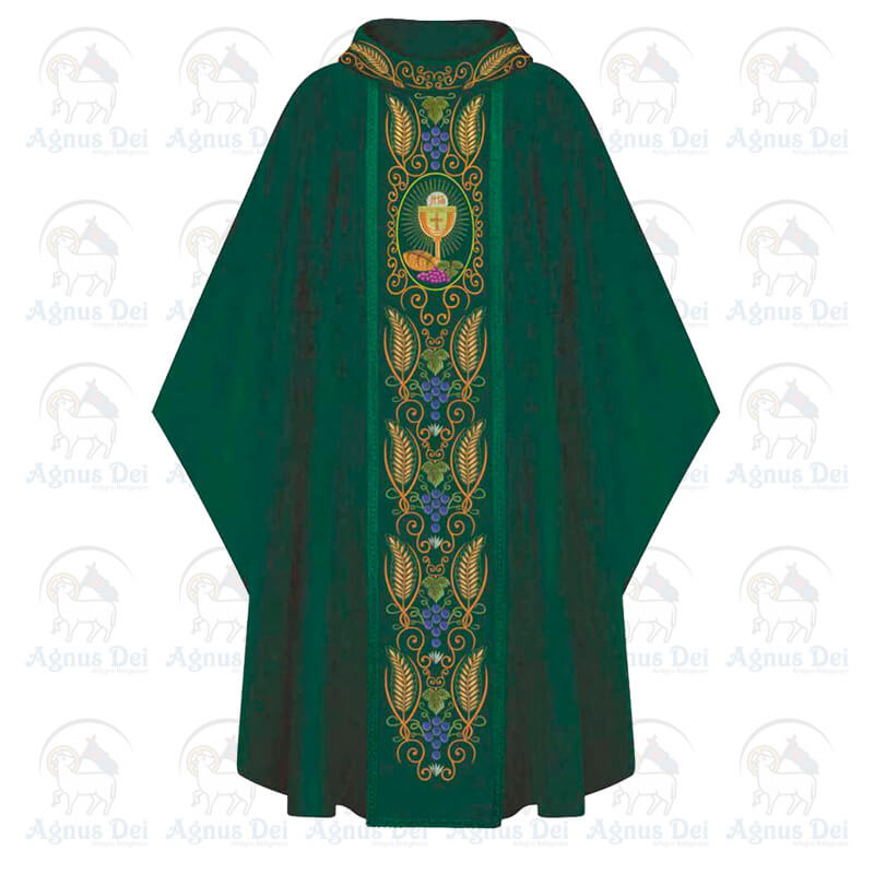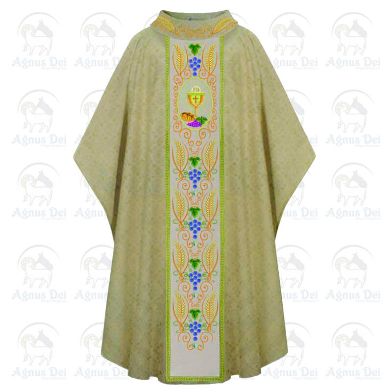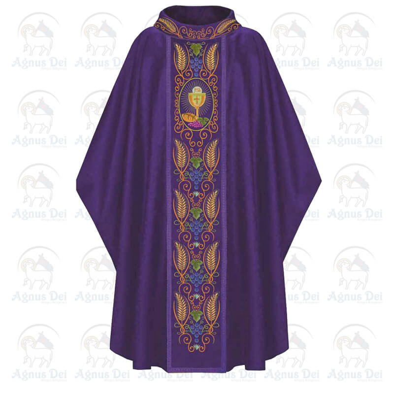 Casula produzida em tecido litúrgico e bordada com linha de alta qualidade.
