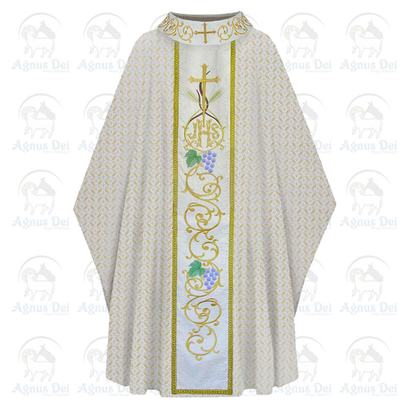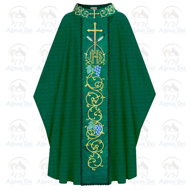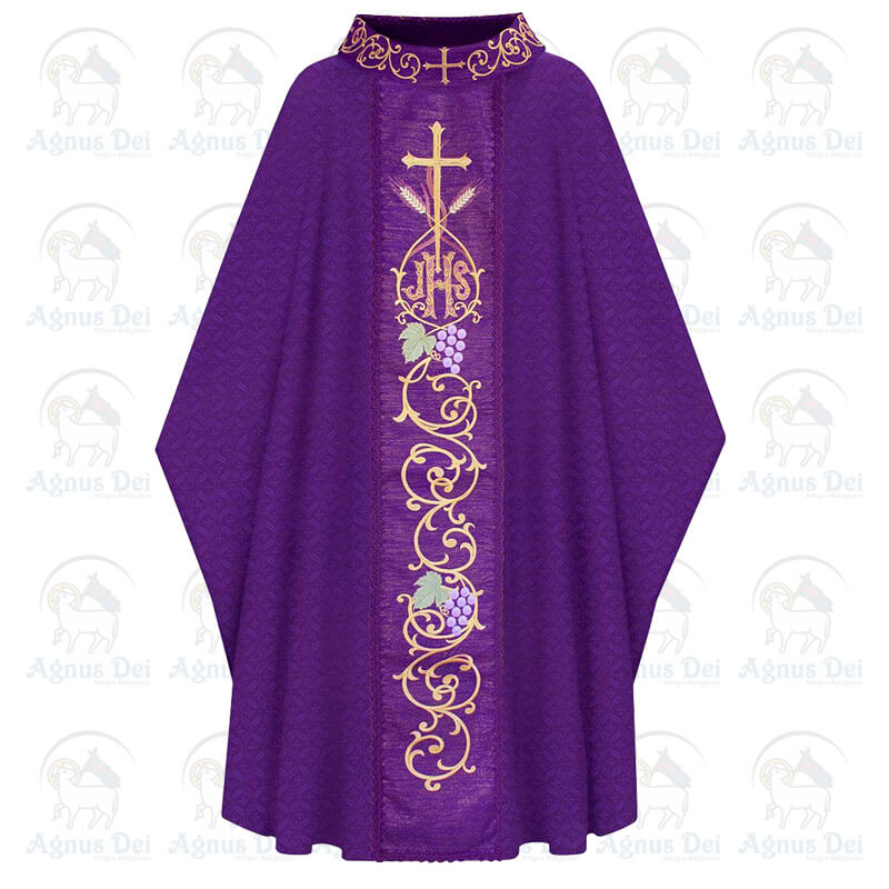 Casula produzida em tecido litúrgico e bordada com linha de alta qualidade.