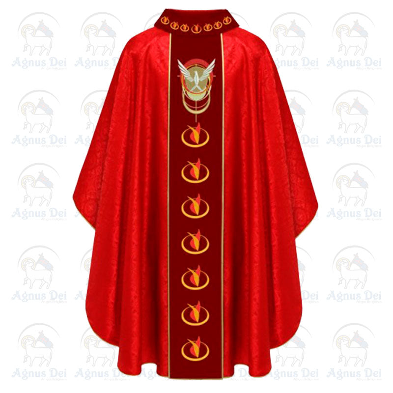 Casula produzida em tecido litúrgico e bordada com linha de alta qualidade. Acabamentos em veludo.
