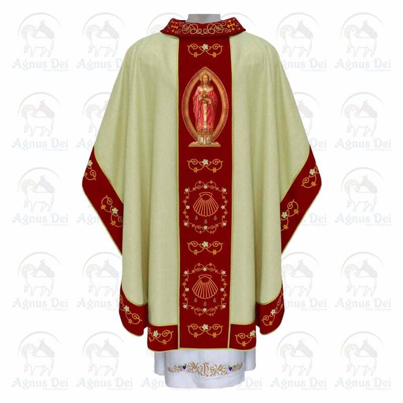 Casula produzida em tecido litúrgico e bordada com linha de alta qualidade.
