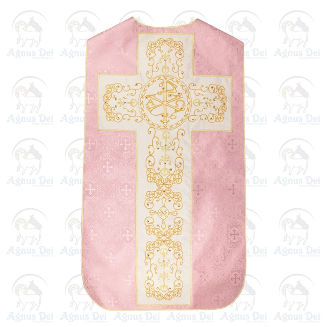 Casula Romana produzida em tecido litúrgico e bordada com linha de alta qualidade.