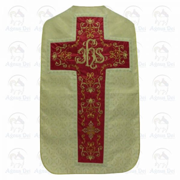 Casula Romana produzida em tecido litúrgico e bordada com linha de alta qualidade.