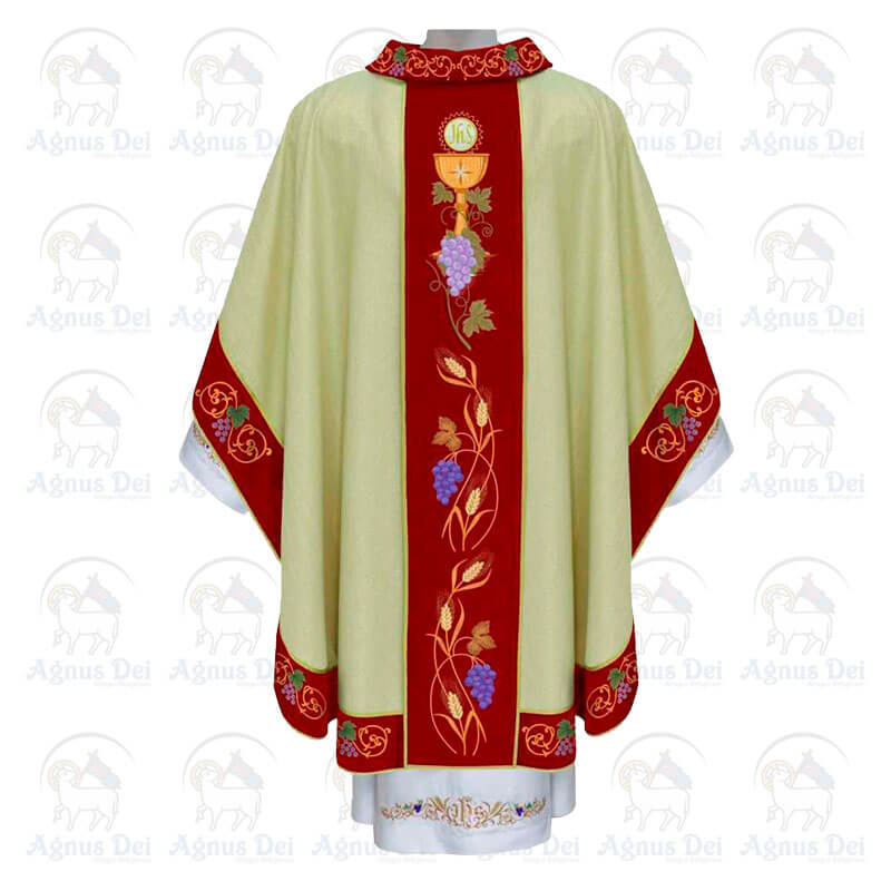 Casula produzida em tecido litúrgico e bordada com linha de alta qualidade.