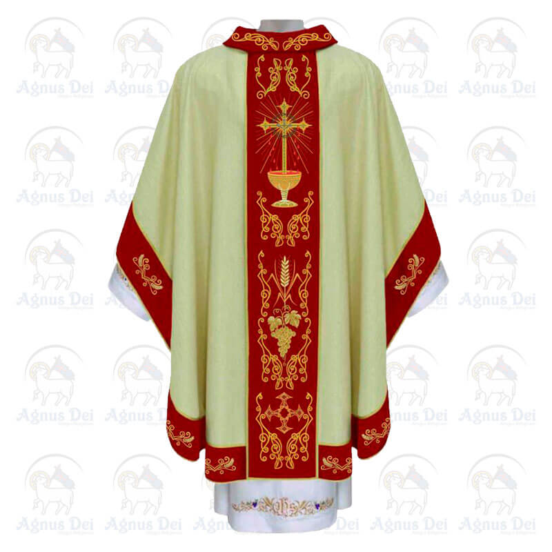 Casula produzida em tecido litúrgico e bordada com linha de alta qualidade.
