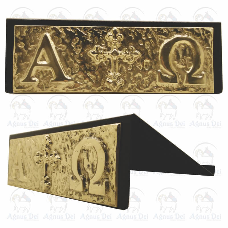 Estante de Mesa Bronze Alfa e Ômega Cruz PI