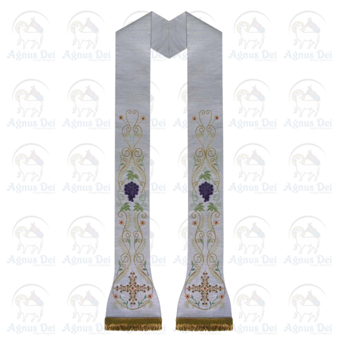 Estola Sacerdotal Romana, fabricada em tecido litúrgico com bordado de altíssima qualidade.