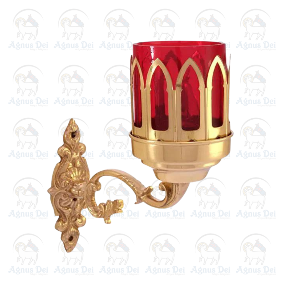 Lâmpada do Santíssimo com metal em banho dourado e copo de acrílico.