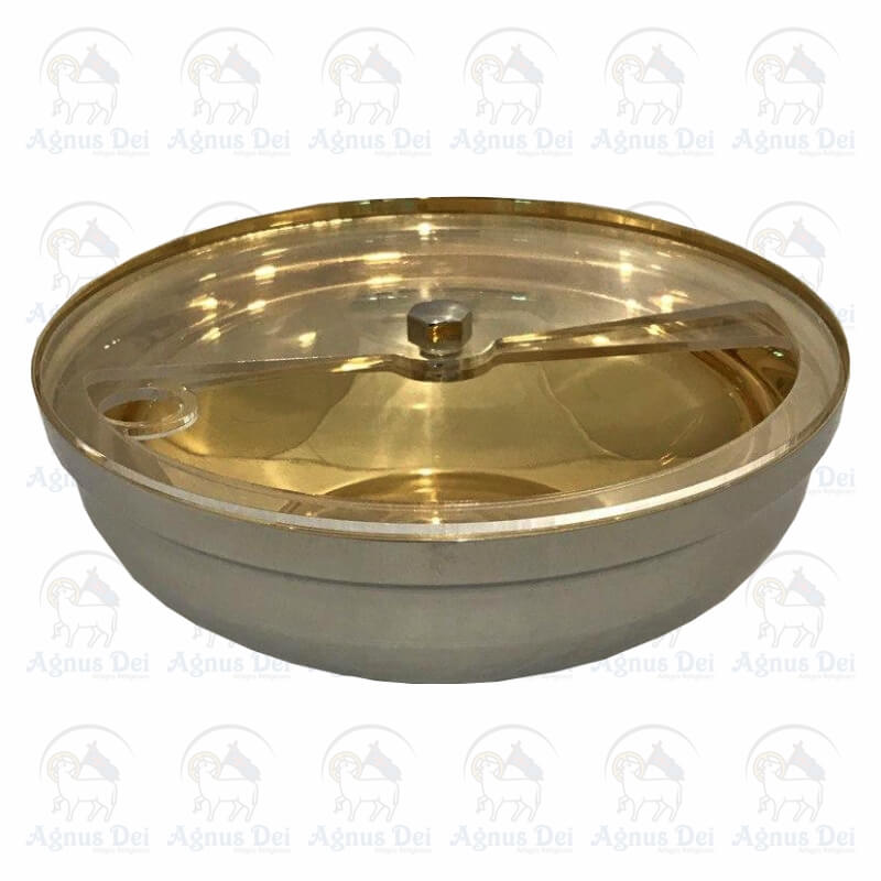 Com protetor de acrílico giratório para proteger as partículas no caso de uma missa campal.