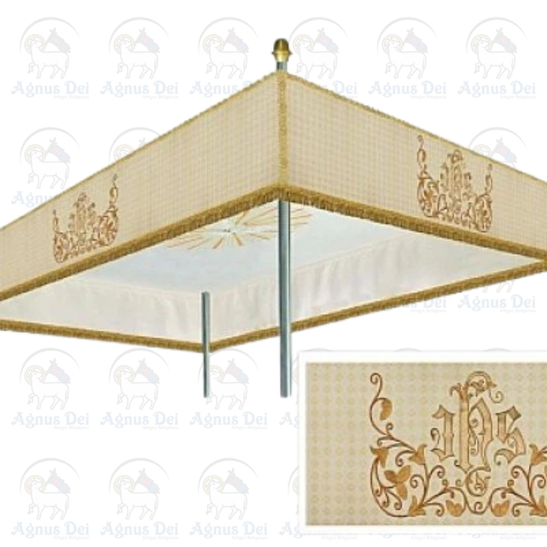 Pálio com 4 Hastes produzido com tecido litúrgico, bordado com linha de alta qualidade.