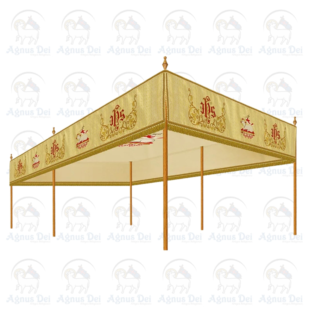Pálio com 6 Hastes produzido com tecido litúrgico, com pedras e bordado com linha de alta qualidade.