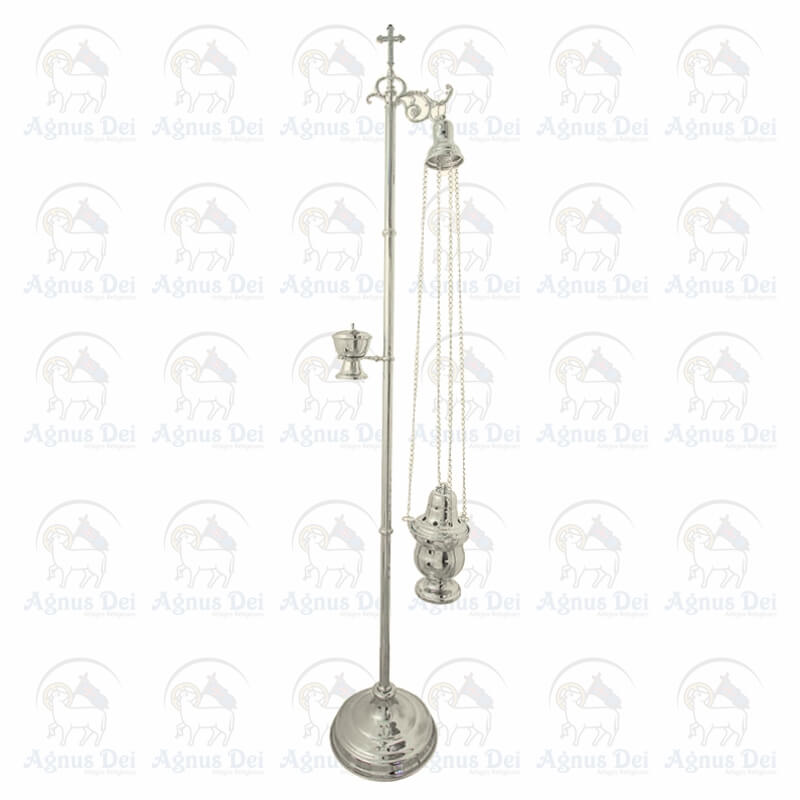 Suporte para turíbulo fabricado em metal, banhado totalmente em cromo.